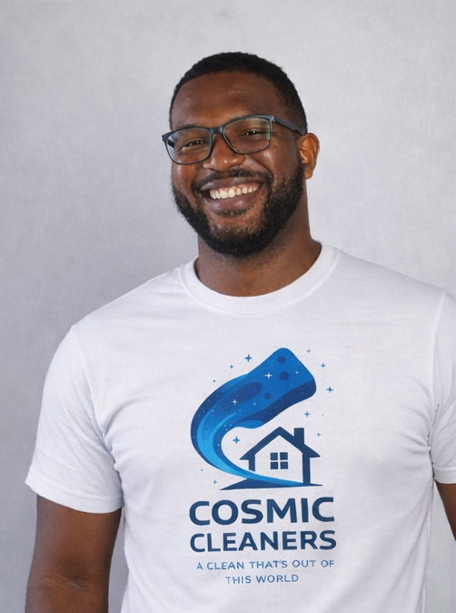 My name is Chibueze Onwuka, Co-Founder of Cosmic Cleaners. Before stepping into business, I was an athlete, and that experience shaped who I am. Sports taught me discipline, teamwork, and the importance of showing up every day ready to give your best. It also taught me that the little details matter, because they’re often what make the biggest difference. I’ve carried that same mindset into the cleaning industry. At Cosmic Cleaners, we take pride in doing things the right way, being dependable, paying attention to detail, and making sure every space we touch feels refreshed and cared for. For me, this isn’t just about cleaning; it’s about building real relationships and treating every client and team member with respect. I’m grateful for the opportunity to serve and look forward to working with you.